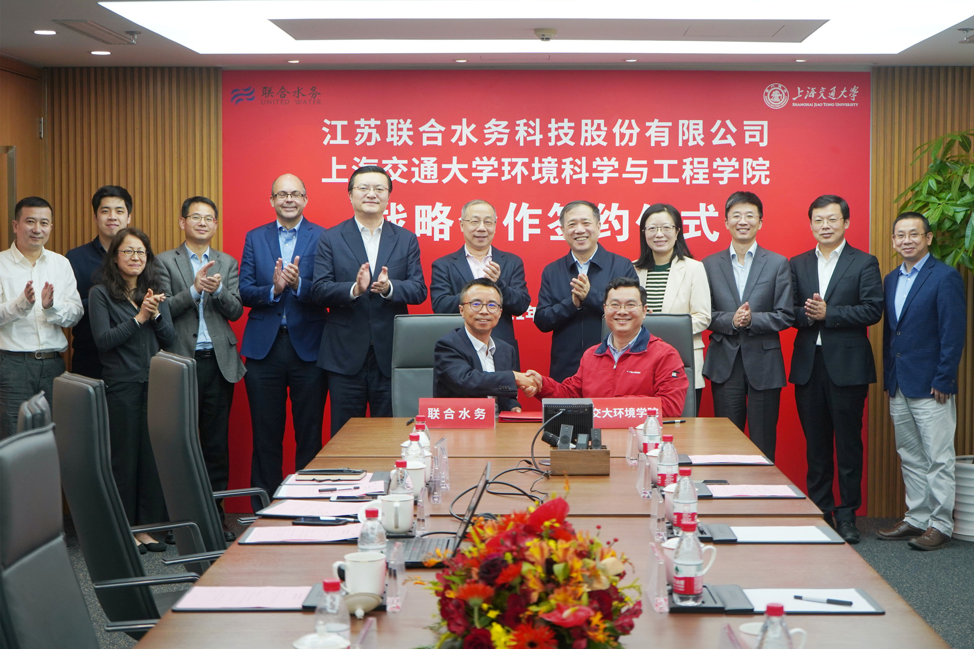陈樵和赵一新代表双方签署了战略合作协议。联合水务和上海交大环境科学与工程学院将在共建联合研发中心、促进科技成果转化以及开展人才培养等方面开展深入合作。