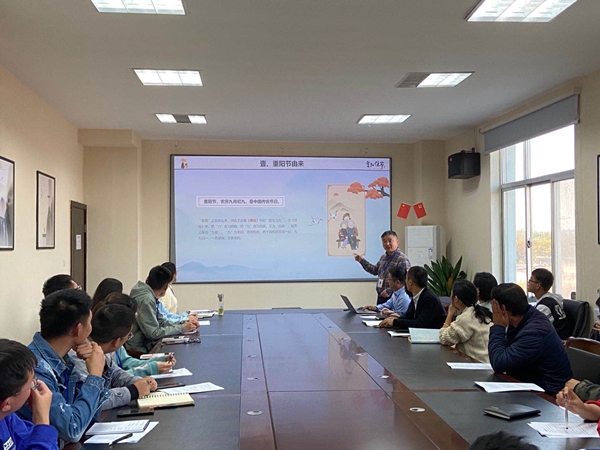 图/ 公司志愿者们与敬老院老人们温馨合影 “百善孝为先”,尊老爱老,道德讲堂开办起来。10月23日下午,公司行政管理部开办了一堂以“重阳节尊老爱老”为主题的道德讲堂课,邀请公司职能部门党支部书记、采购部经理任高升为主讲人,公司各部门代表30余人参加了活动。任高升经理家有优良的孝老爱亲传统,多年被居家所在社区评为“五好家庭”。任高升经理,现身说法,首先为大家介绍了重阳节的由来,重阳节的传统习俗,他说,重阳节也是老人节,传统节日里可能最不为大家熟知的节日,特别是年轻一代人,他希望大家重视重阳节,关爱老人。他又结合自身家庭情况向大家传扬了孝敬老人是千百年传承不变的中华美德。这堂有意义的课,让大家感悟很多,纷纷对以往忽略父母的行为感到内疚,表示今后一定多回家看看,多关爱父母,还要以自己的言语影响身边人,以自己的行动感召周围人,代代相传,营造尊老、敬老、爱老的浓厚氛围,形成尊老光荣的良好文明风尚。
